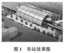广州市地铁四号线从新造至金洲段共8个高架车站,站台部分全部采用钢结构。设计造型各有不同,但结构形式基本为门式刚架结构,主要采用焊接变截面H型钢,但刚架全部为弧形结构。而刚架与基础采用铰接的形式,钢结构施工技术难度较大,针对各站的设计不同,现场采用了不同的吊装工艺。车站的效果图如图1所示。