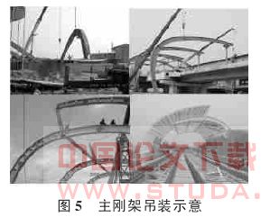 本工程主要特点是施工场地狭窄,高架桥已施工完成,吊装条件差,采用机械吊装难度大,而且多采用分段吊装,临时支撑在受力、吊装精度方面要求较高。由于设计柱脚处为铰轴连接,测量定位困难,必须采用先进的仪器进行跟踪测量校正。