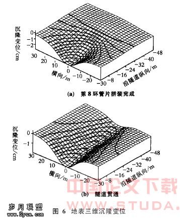 研究结果:揭示了围岩条件、隧道埋深和顶推力等因素变化对盾构隧道施工引起地表沉隆变位的影响,运用三维曲线探讨了盾构隧道施工过程中的地表沉隆变位曲线空间分布变化规律。