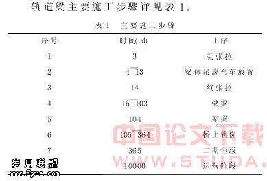 轨道梁主要施工步骤详见表 1。