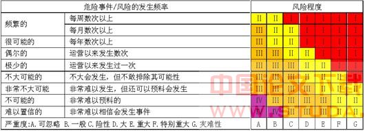 | Ⅳ | 低风险 | 可忽略发生的 | 经/不经有关管理部门同意都可接受 |
