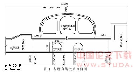 暗挖车站上半断面位于粉土层和粉质粘土层, 下半断面位于细砂层, 底板以下为厚 4.0 m 的卵石圆砾层、厚 2.2 m 的粉土层、厚 3.7 m 的细中砂层、厚 7.0 m的卵石圆砾层。即既有隧道上半断面位于卵石圆砾层, 下半断面位于粉土和细中砂层, 底板以下为细中砂和卵石圆砾层。潜水含水层为既有隧道上半断面所处的卵石圆砾层, 承压水含水层为既有线隧道下半断面所处的细中砂层。