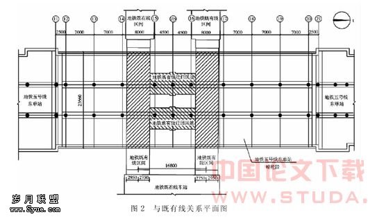 (2)土体加固施工 在距既有线 6 m 处停止开挖, 对既有线周边土体进行超前注浆加固。注浆加固既有线时采用二重管无收缩双液注浆技术, 二重管钻机钻杆具有成孔和双液注浆功能, 钻孔和注浆能连续、快速进行, 确保注浆质量。根据注浆压力、地质参数及现场试验综合确定扩散半径为 0.3 m, 孔距采用 0.5 m, 注浆时跳孔施工。采用后退式注浆, 后退幅度为 15~30 cm。实行定量、定压注浆, 使岩土层的空隙或孔隙间充满浆液并固化。注浆施工前必须核清既有隧道的准确位置, 且不能采用过高注浆压力, 以确保既有地铁隧道安全。3. 3 设置预应力锚杆 根据分块开挖, 发生开挖卸载及时补偿卸载的原则, 在导洞初期支护完成后, 开始在导洞内向下施工预应力锚杆。预应力锚杆群不但及时进行了部分卸载补偿, 同时也起到了加固土层, 改善土层性状的作用。 (1)预应力锚杆设计参数 在卸载影响范围( 注浆加固范围) 内设置预应力拉锚, 拉锚一端固定于初期支护底板上。锚杆呈梅花型布置, 间距 2 m ×2 m, 锚杆长为 15 m 及 10 m 两种, 贴近既有一号线区间侧采用长锚杆。暗挖车站边缘锚杆为斜向外侧下方设置( 与垂直方向夹角 10°),其余为垂直向下设置。杆体材料 2!32 钢筋, 锚杆全长均为锚固段, 锚固体直径 0.1m, 锚杆轴向拉力设计值 230 kN。锚杆注浆材料为水泥浆, 其抗压强度不低于 30 MPa(见图 4)。 (2)预应力锚杆施工 由于洞内空间狭小, 选用锚杆钻机时必须考虑到洞内尺寸, 必要时可以对钻杆进行改装。在暗挖导洞内每开挖支护 5 m 施工一次锚杆, 保证从开挖卸载到完成预应力锚杆补偿卸载之间尽可能小的时间间隔。3. 4 调整降水标高 当隧道处在相对不透水土层中, 水位的上升或下降如同对隧道的加载或卸载。新建车站开挖前, 先降水在既有隧道的底板以下, 相当于对既有隧道向下卸载, 以平衡部分新建车站开挖时对既有隧道向上的卸载。同时, 既有隧道周边的土体水疏干后, 也提高了土体的抗剪强度, 增强了抵抗卸载变形的能力。3. 5 采用远程监控量测 在暗挖车站施工期间, 必须对既有地铁进行全天候的实时监控量测, 传统监测技术在高密度的行车区间内无法实施, 且不能满足对大量数据采集、分析以及及时准确的反馈, 因此采用远程自动化监测系统对既有线的结构和轨道变形进行 24 h 监控量测。该系统由在量测部位安装的测量元件、数据传输线、监控室的终端机组成。监测项目如下: (1)既有隧道结构变形监测 结构沉降监测采用静力水准仪。以新建车站下33 m 长的既有隧道为重点监测区域, 上、下行线共布设 24 个测点。以 2 个结构缝处为重点监测对象, 在结构缝的两侧各布设 1 个测点。针对施工可能影响到变形缝之间的胀缩, 采用测缝计进行测量, 每道变形缝上布设 2 只测缝计。 (2)轨道变形监测 ① 走行轨结构纵向变形监测。本项观测为监测重点, 因静力水准仪的精度在沉陷量传递中精度明显高于水平梁式倾斜仪, 故轨道变形监测采用在地铁排水沟中布设静力水准系统的方法进行监测。以新建车站下 33 m 长的既有隧道为重点监测区域, 上、下行线共布设 16 个沉降测点, 该系统同时可监测走行轨结构变形缝处的不均匀沉降。 ②采用变位计监测走行轨水平间距的相对变形,沉降测点上、下行轨共布设 6 只。 ③采用梁式倾斜仪监测走行轨左右水平的相对变形, 沉降测点上、下行轨共布设 6 只。4 结语 既有运营地铁隧道对变形要求极其严格, 如何有效控制其纵向变形需要前瞻性和系统性。适当对既有隧道上方及两侧土体进行加固以及增加抗隆起设计是控制隧道隆起的一种较为有效的控制手段。土体加固的目的是为了改善土体的力学参数, 以期以注浆加固土体与预应力锚杆的共同作用来控制隧道的变形,但是, 不恰当的施工参数和工序反而会引起更大的隆起变形。利用自动化监测系统掌握隧道变形情况, 对监测施工、保证地铁运营安全至关重要, 必须有一个绝对负责的全过程监控核心组织。 本文结合北京地铁五号线东单暗挖车站施工对下卧既有隧道的保护, 分析了影响既有隧道卸载变形的主要因素, 提出了系统性的保护措施, 希望能对类似工程的设计和施工。 参考:[1] 潘钟麒.上海世纪大道某立交工程地下箱涵施工对地铁保护的研究[J].特种结构,2001, 18(4): 39- 43.[2] 林永国, 廖少明, 刘国彬.地铁隧道纵向变形影响因素的探讨[J].地下空间,2000, 20(4): 264- 267.[3] 屈智炯. 土的塑性力学[M].四川: 成都科技大学出版社,1985.
