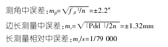 该导线用天津市测绘院提供的软件严密平差后,最大点位中误差1.32mm,最大点间误差1.28 mm,导线全长中误差达到1/180000。