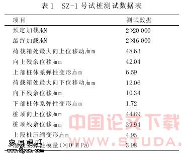 SZ- 1 号试验桩经计算分析得到试验结果见表 4。