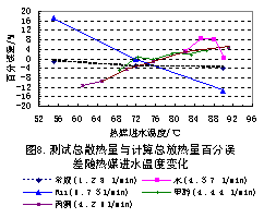 图8表明,总放热量百分误差分布非常集中,基本上在±8%范围内,说明分析模型对实验工质及散热器类型是基本适用的。但对于R11工质热虹吸散热器,在低温热媒和高温热媒情形下,误差值比较大,因此有必要做进一步的实验研究和分析。