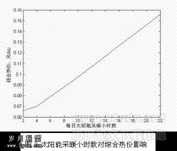 从图2上可以看出,综合热价也基本与太阳能负担的采暖小时数成正比,可见如果全天24小时由太阳能采暖,则经济性更差。