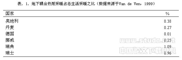 在这项技术市场发展出现得最多的的欧洲中部和北部,那里的气候是整个欧洲最需要室内供暖的,但是在那里空调却很少需要。因此,不同于美国的“地热热泵”,欧洲的热泵通常主要工作在制热模式下。但是在欧洲南部,尤其是在希腊和土耳其西部,GSHP装置最近才仅仅通过论证的阶段;在瑞士的技术支持下,希腊于1993年安装了第一个利用BHE的GSHP实验装置[Papageorgakis,1993]。受此影响,随后在雅典的国家技术大学校内的矿业工程大楼项目中,也采用了复合有地下水井和BHE的地热热泵方式来对建筑物进行供暖和供冷[Karytsas等,2002];很快,这项项目就有了其他的追随者[Mendrinos等,2002]。在广泛的商业应用、持续的供冷需求以及眼下该技术在欧洲南部的日益推广的共同作用下,这种既能供暖又能供冷的技术在将来一定会有更加重要的地位。