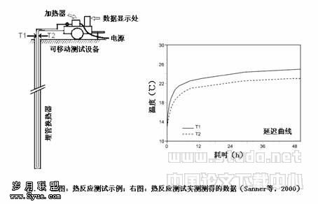 在热反应测试中[Sanner等,2000],使BHE承担一个已设定好的热负荷,然后测出在循环中最终的温度变化(图.3)。由于通过这项技术确定的埋管尺寸是以可靠的地下数据为基础的,因此从1999年年中起,在欧洲中部的大容量BHE设计中也开始采用了该项技术。热反映测试早在1995年就在瑞典和美国得到了率先发展[Eklof和Gehlin,1996;Austin,1998];目前,已经在包括土耳其在内的许多国家得到了应用。在使用了可靠的设计软件之后[Hellstrom和Sanner,1994;Hellstrom等,1997],即便是在大型的应用中,BHE也能成为一种安全可靠的技术。