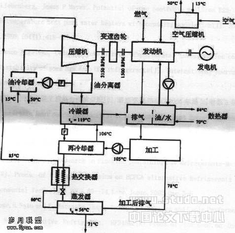 针对使用工质的不同,高温热泵系统的形式也各异。目前已有的使用自然工质的系统,为了达到特殊要求的高温同时具有较高的COP,一般采用多级压缩、逐级升温的方案。此外还有其它一些特殊的循环方案的提出,如图2是瑞士一家研究机构提出的改进热泵循环,改进后可以提高热泵的出水温度到70℃以上。