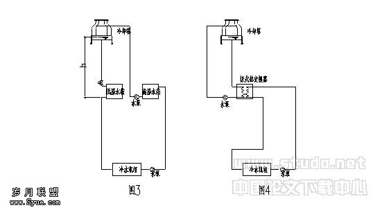 解决方法三:加板式热交换器隔绝高压,但冷却塔选用要有余量,如图4。