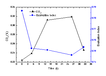 图1 CO2浓度与综合评价指标变化的对照曲线