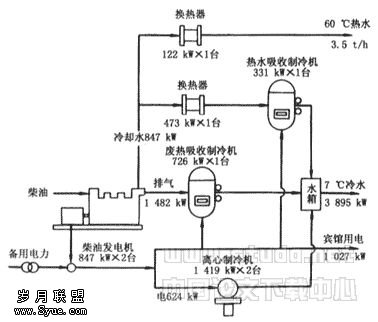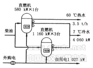 酒店总能系统由于实现了能级的合理匹配,低品位的余热都得到了充分利用,因而能量利用率比原柴油机备用电站有大幅提高。柴油机发出的电力不仅满足宾馆全部自用电,而且还可以带动离心式制冷机,负担宾馆相当一部分冷负荷。这种联合运行方式充分发挥了压缩式和吸收式制冷机的各自优势,并且排除了对外界电网的依赖,能确保酒店用能系统的稳定可靠运行。总能系统的热经济性随着电价的上涨将进一步提高。