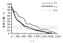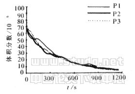 使门窗分别处于不同状况进行实验。起始时刻房间内示踪气体体积分数为90×10-6左右,在房间中心点(图1中P2点)进行测定。图2~4是P2示踪气体体积分数衰减曲线,表1是根据各点测量值整理的房间换气次数的结果。