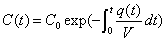 式中C0为初始时刻示踪气体浓度,当q(t)=const时,