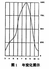 在我国的南方特别是深圳地区周围,每年空调开的时间大约1o个月左右。这样一年之中,中央空调系统中的冷却泵机组和冷冻水泵机组都在固定的大流量下工作。另外由于季节、昼夜和用户负荷的变化,实际上空调负载在绝大部分时间内比设计负载低很多,如图1和图2所示。