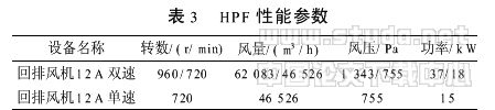 某地下车站初步设计中车站每端选用2台双速12A型风机(参数见表3),运行方式为:每端平时2台风机低速运转,火灾时切换成1台风机高速运转;施工图设计时,笔者将此改为车站每端选用2台单速12A型风机(参数见表3),运行方式为:平时与火灾时每端均运转2台风机。分析以上两种方案(该系统风道合用一套)可得,平时运转风量、风压相同的4台单速风机,其电耗共减小12kW;火灾时2台单速风机并联运转,衰减后风量与单台高速风量基本相同,风压也能满足要求,此时4台风机电耗共减少14kW,还避免了火灾时的控制切换。由以上两例不难看出设备的设计优化的必要性。