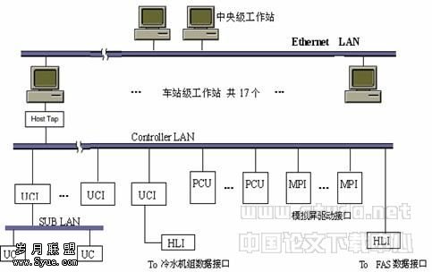 (1) 采用分层局域网(LAN)技术,可实现几点到十万以上点的控制网络,车站间采用以太网(TCP/IP协议)通信,车站级主网(CONTROLLER LAN)采用令牌总线网络通信,子网(SUB LAN)采用轮询(MASTER/SLAVER)方式通信。