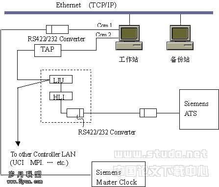 中央级设置工作站及备份站各一套,工作站同备份站实现以太网级别的热备。OCC局域网有与信号ATS及通信主时钟的数据接口及模拟屏一块,网络配置如下: