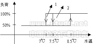 (3) 根据环控要求,车站负荷判定采用水系统分水器温度(冷冻水出水温度)判定,当分水器温度高过某定值开启两台离心机组,低过该值时则仅开一台离心机组,该值采用死区控制,广州地铁一号线初定为7℃~9 ℃。