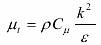 ρ 和 μ 分别为容积分数平均密度和分子粘性系数; μt 为紊流粘性系数,它可由紊动能 k 和紊动能耗散率 ε 求出: