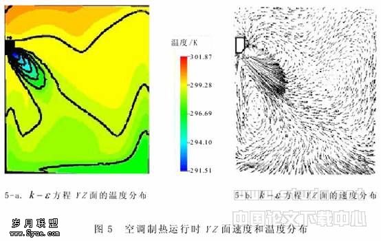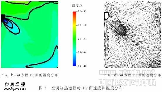本文利用湍流 k -ε 、 k -ω 方程了壁挂式空调的制冷与制热运行时的三维速度与温度场,分别比较了制冷与制热运行时 3 个不同坐标平面内的速度与温度分布. 空调的制冷与制热运行的两个工况,制冷运行中出现了冷风下坠现象,在制热运行中有部分热空气未经充分热交换而直接回流,能量利用不充分,温度均匀性也不好. 利用 CFD 计算可以改善室内的气流组织,通过改变空调不同气流出口速度、不同的出口角度从而得到合理的气流组织形式,这是采用传统的射流理论无法做到的.