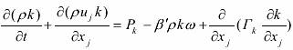 ρ 和 μ 以及 μt 的意义同 k -ε 方程的说明;