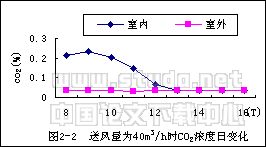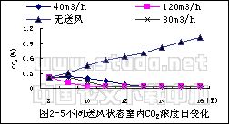 表2-1 实验室CO2浓度的日变化 单位:(%)| 时间送风 | 8:00 | 9:00 | 10:00 | 11:00 | 12:00 | 13:00 | 14:00 | 15:00 | 16:00 | 备注 |