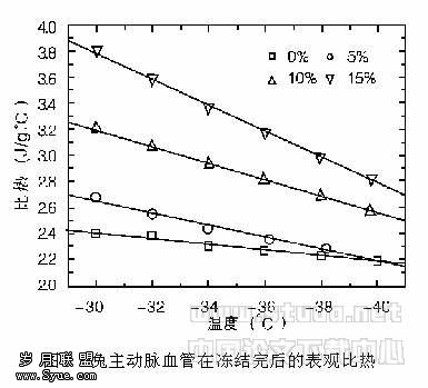 用DSC测定兔主动脉血管冻结相变区间的表观比热容及其影响因素