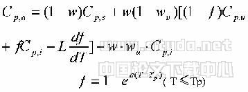 比热近似公式针对活体组织或水分丰富的食品材料在相变温区的表观比热,Shi提出了如下计算公式[7]: