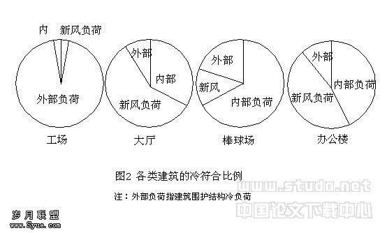 各种大空间建筑的符合因素所占的比例并不一样。图2表示了它们之间的差别。
