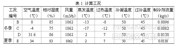 对于所建立的空气源热泵冷热水机组的动态数学模型[1],采用机求解,计算工况见表1,计算从某一时刻压缩机吸入口开始。调用各子程序,可以计算出空气侧换热器的换热量以及结霜等情况。