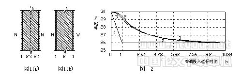 在夜间空调系统停止运行期间,围护结构材料的温度、空调空间内空气的温度与室外温度的关系比较复杂,为了简化,这里取在空调系统投入运行时围护结构材料的温度、空调空间内空气的温度、室外温度三者相同。