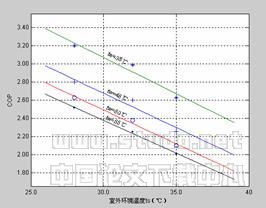 3.4系统的COP与室外环境温度的变化关系
