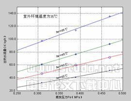 外环境温度为35℃时,热水供水温度从45℃降至35℃,供热水量约增加了45.9%;从55℃下降至45℃时,供水量约增加了84.3%。
