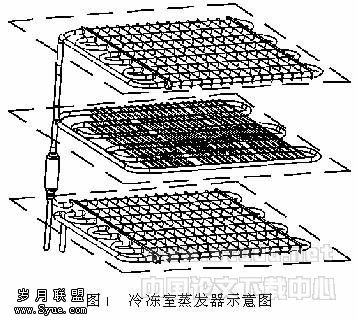 5.2.3 两大换热设备(蒸发器和冷凝器)中制冷剂管道的合理布置。两大换热设备换热能力的提高对提高系统制冷量,降低能耗十分重要,而换热能力的提高与其中制冷剂管道的合理布置紧密相关。项目研制中,冷藏室蒸发器双排并行盘管紧贴于内胆之上,冷冻室蒸发器采用分层立体结构。冷凝器设计为横、竖盘管混排结构,并采用外挂式。通过这些措施,大大增强了蒸发器与冷凝器的换热能力,经实测,电冰箱最大负荷时日耗电仅0.39度,而在节能状态下耗电在0.35度以下。