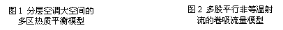 本文在BLOCK模型基础上,建立了一个多区热质平衡模型,包括多股射流速度重合与流量、表面热平衡、垂直壁面换热与流动、区域热质平衡等子模型,计算过程包含了传导、对流和辐射的三传耦合。