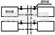 对于双立管并联式系统,任何一层的用户只要在散热器支管上加调节阀就可以达到调节介质流量,从而满足用户对热舒适性的要求,并实现节能。但这种调节方式在使用时,应该考虑到以下问题:(a)此系统在楼层数过多时易出现严重的垂直失调现象,其系统垂直高度以不超过三层为宜,实用性受到限制。(b)穿越楼层的立管数增多。(c)仅适用于安装热量分配表的系统。(见图4)