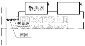 单管水平串联系统是一种比较常见的采暖系统。其做法是在每个住宅单元设置一个总的供回水系统(称为大系统),每层用户为一个独立的小系统。总供回水立管管井设在靠楼梯的橱卫处,每层供回水接在大系统上(每层只装一户),在小系统出入口管道上加调节关断阀门及热计量表,以便分户计量热费。此系统的优点是:竖向无穿楼层的立管,不影响墙面装修;缺点是:不能分室控制温度;每组散热器均须设冷风阀;管线过门、阳台须处理。(见图2)