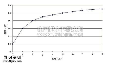 2.2.1 高效节能 该采暖系统产生的远红外线直接加热地面、设备、人体,被加热体吸热后变为储能装置再次向空间放热,这就使被加热体温度高于周围空气温度,同时使室内空气下层温度与上层温度接近。而采用对流原理的供暖系统是直接加热空气,由于热气上浮形成室内空气上层温度明显高于下层温度,造成大量的热量通过天花板及外墙散失,增加了能源消耗,两者相比,采用燃气红外线辐射采暖技术可节约能源达30%以上。下图为两种供暖方式的温度分布的对比。其中图2是对流供暖方式的温度分布示意图,图3是红外辐射供暖的温度分布示意图。