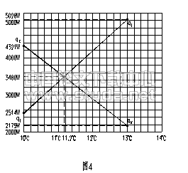由于qt、qk都是线性方程,在坐标纸上(见图4)连接qt ~ qt和qk ~ qk的交点即为所求答案,tw2=11.2°C,qt = qk=3480W。