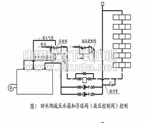 2.1 回水侧减压水箱加浮球阀或液压液位控制阀控制。