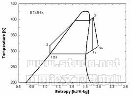 HFC-245fa是Honeywell公司推出的应用于发泡工业的一种新的不易燃(non-flammable)、低压HFC制冷剂[3]。它属于等熵流体[4],具有较高的临界温度(427.2K)。在废热回收中的操作条件下它处于中压范围[5]。