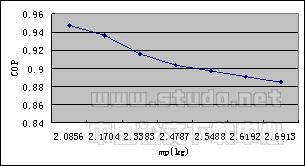 根据表3,可以绘制出mp与COP的关系图,如图4所示: