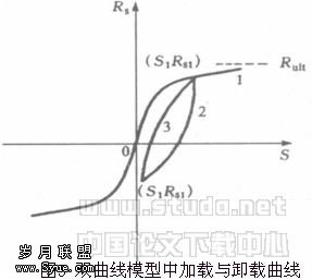 本文根据Masing准则和Pyke对Masing模型的修正方法[9]来确定卸载与加载的荷载RS与位移S的关系曲线。从第一象限状态点(S1,Rs1)处卸载阶段( 如图3中曲线2),土体单元的静摩阻力为