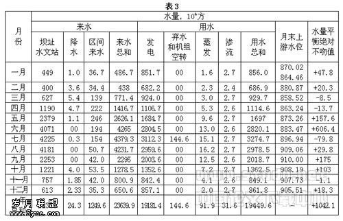 式中:H上游和H下游—水电站上、下游水位高程;S—水库水面面积;W—水库库容;W蒸发i=年内第i个月水库水面蒸发量;Q最大—通过水电站的最大允许流量;q单位—每1千瓦•小时发电量所需单位流量。