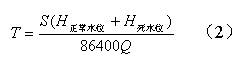 式中:T—水库放水时段,小时;S—水库水面面积,平方米;