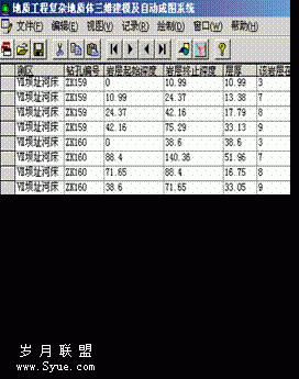 以地层岩性数据表为例,要求录入钻孔编号、岩层起始深度、岩层终止深度、层厚、岩性(地层名称)、地层代码(地层年代)、岩层走向、岩层倾向、岩层倾角、接触关系、地质描述等数据。随着工程勘测的进展,能够方便地修改补充和管理勘测数据。图2是工程勘测数据库中钻孔地层系统数据表的管理界面。