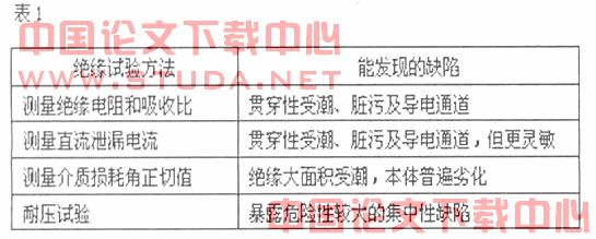 这类试验是指在较低的电压下或是采用其它不会损伤设备绝缘性能的办法来测试设备绝缘的各种特性,从而判别绝缘的内部的缺陷,例如测量绝缘电阻和泄漏电流、测量绝缘的介质损耗角正切值tgδ(%)、绝缘油的物化特性、绝缘油气相色谱分析等。非破坏性绝缘试验对于检查牵引变电所电气设备绝缘缺陷的有效性比较表,如表1所示:
