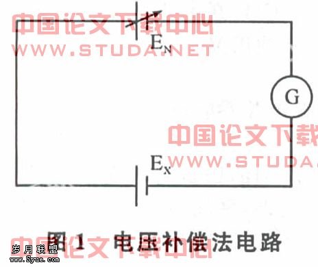 补偿法是精确测量电压的一种测量方法,如图一所示的电路可以用来测定未知的电动势,图中Ex是被测电动势,EN是可以调节的已知电源。如调整EN值使回路中检流计指示零值(即回路里电流为零)。则Ex与EN的关系是电动势方向相反,大小相等,故数值上有Ex=EN。这时电路达到电压补偿,这种方法称为补偿法。补偿法由于不消耗被测量的电能而具有较高精确度,在电学测量中电位差计不仅用来测量电源电动势,某段电路上的电位差,还有着广泛的应用,本文着重讨论电位差计的扩展应用。
